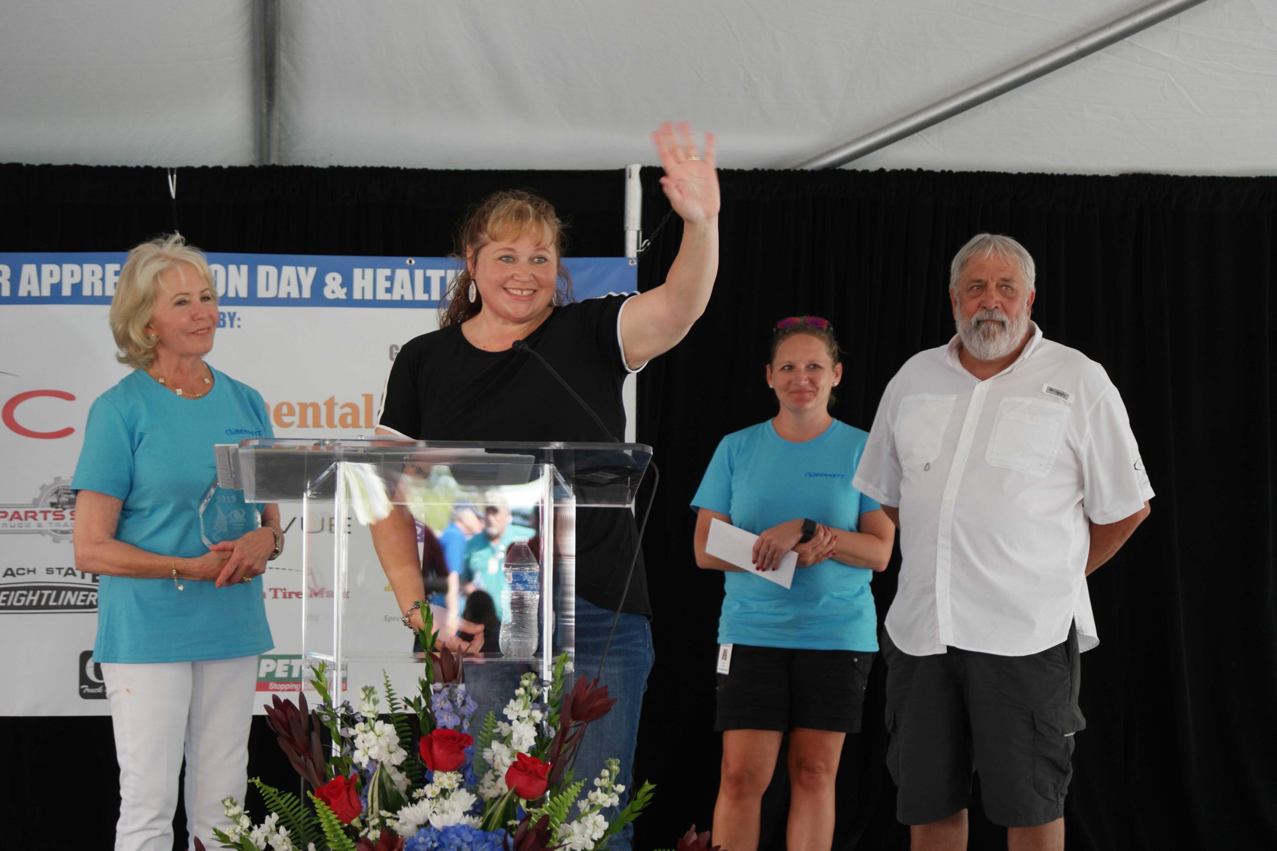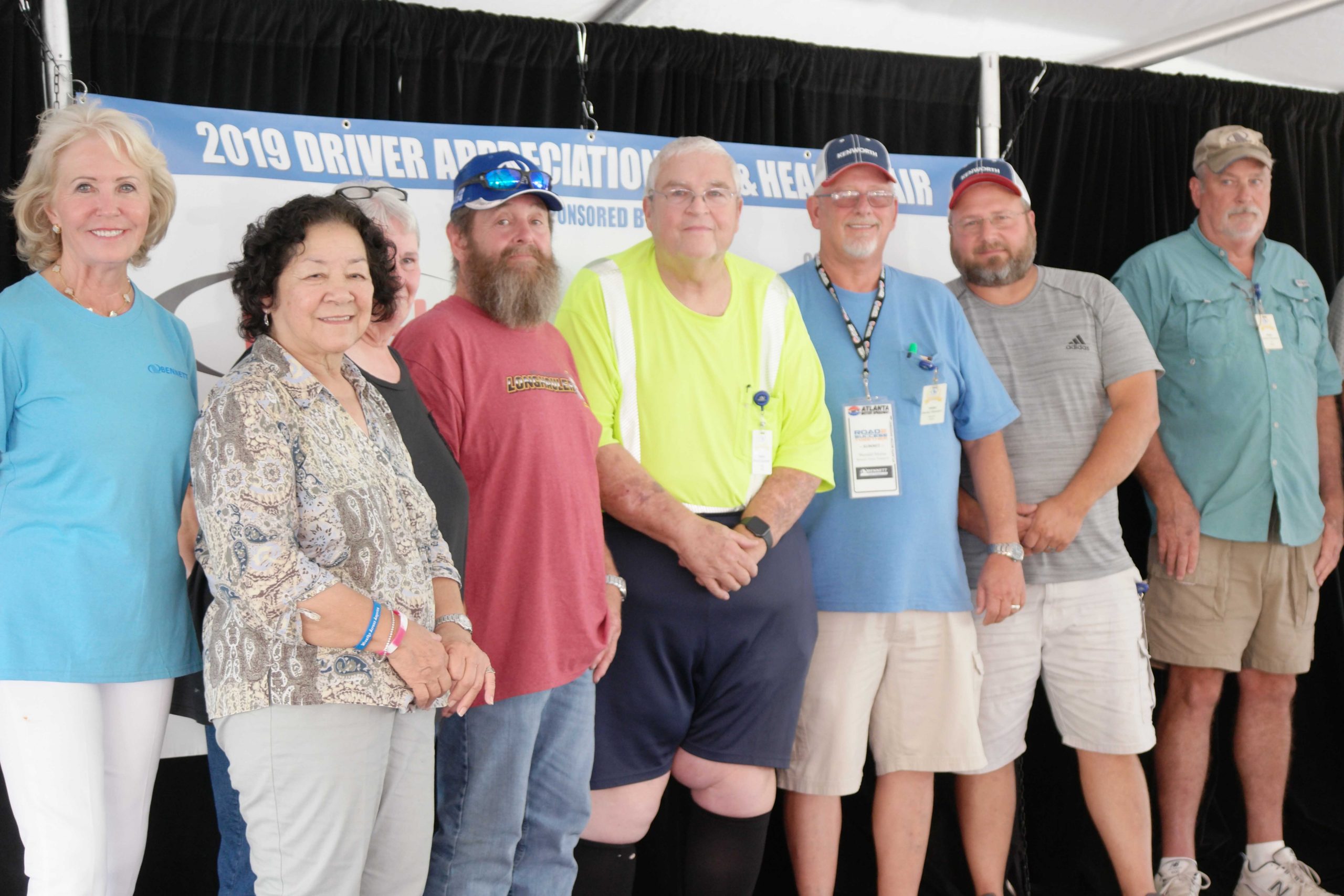 Later during the presentation, Marcia Taylor, president and CEO, announced the 2019 Women Driver of Excellence award winners during a special ceremony to celebrate the 5th Anniversary of the Women in the Driver’s Seat program. Every year through the program, a woman driver chosen for her positive impact in the industry is nominated by certain Bennett division’s. Those honored included Vallerie Hayden, Bennett Motor Express; Darla McDowell, Bennett DriveAway; Lisa Little, Bennett’s DriveAway RV division; Heidi Crosby, Bennett’s Truck Transport division; Terry Davis, Bennett’s Heavy and Specialized division; Violet Helferich, Ace Doran and Kara Leppert, BOSS Transportation Services. The very first Woman Driver of Excellence Award winner, Guadalupe ‘Lupe’ Potter with Bennett Motor Express, attended the event and was recognized during the ceremony. Bennett women drivers and women employees in all company locations across the U.S. donned the signature “Women in the Driver’s Seat” blue shirts to mark the special milestone. Members of the President’s Million Mile Club were also recognized and a special tribute video for the late J.W. Jackson played as he was honored for being part of the select few in the President’s Three Million Mile Club. In addition, drivers were inducted into the President’s Million, Two Million and Three Million Club for not only their loyalty to Bennett but the number of safe miles driven during their careers.