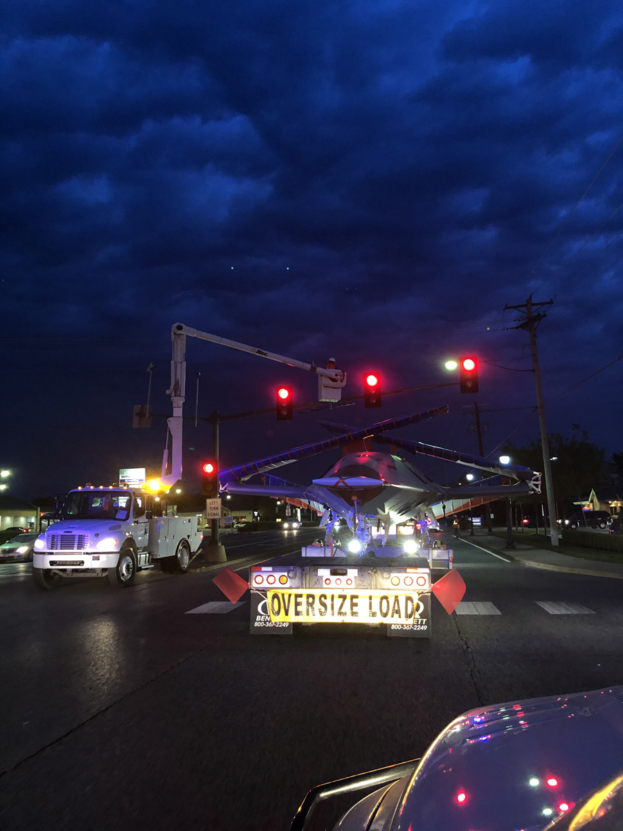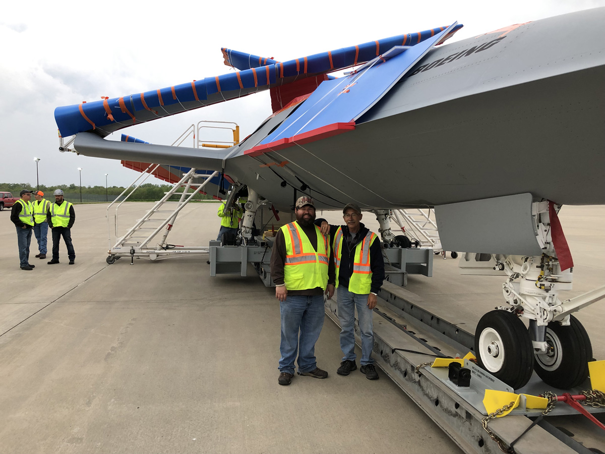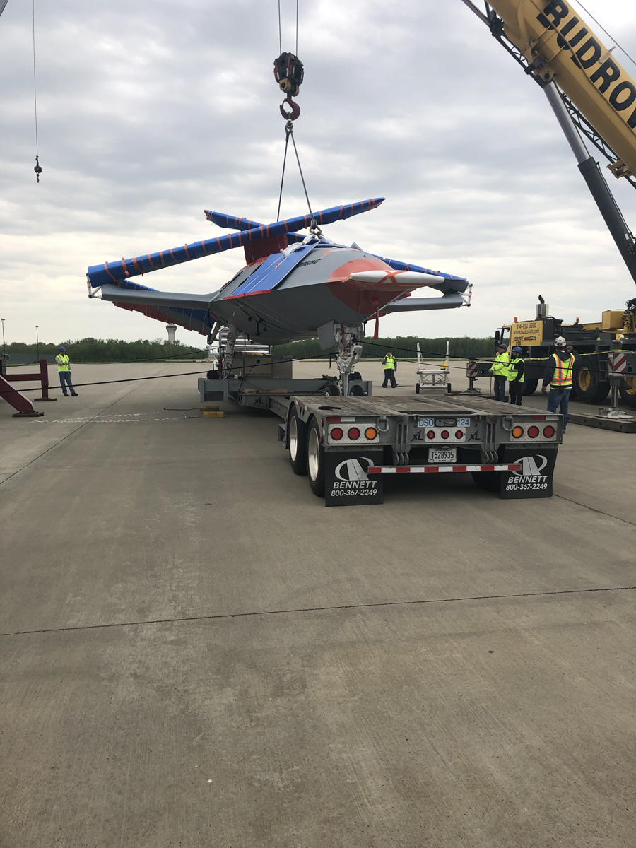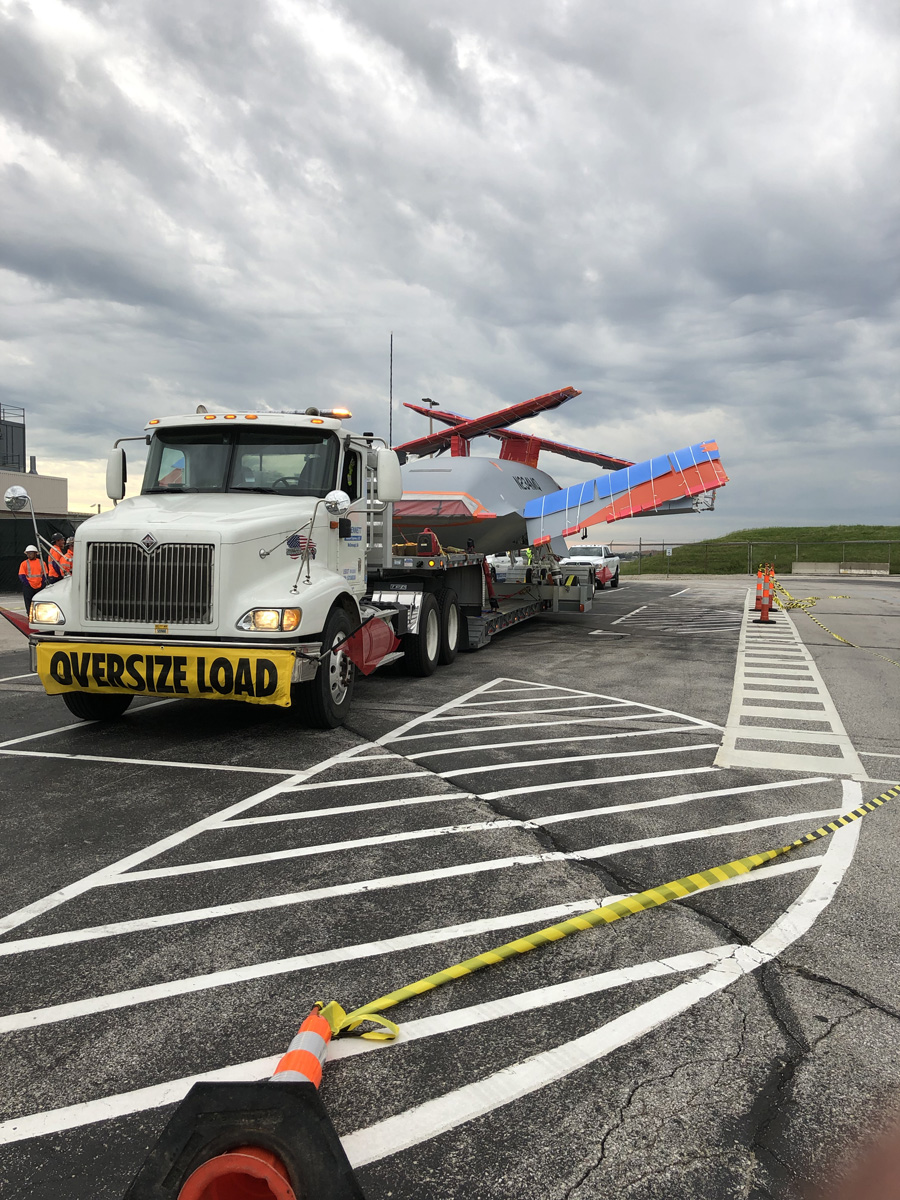 After the weeks of planning and a nerve-wracking 10 hours crawling through Missouri and Illinois, there was intense relief as well as a sense of pride as the MQ-25 arrived at the airport. “We pulled into the gate, and everybody was happy and high-fiving everyone. That’s when we knew we did a great job. It was all a team effort,” Wengerd recalls.