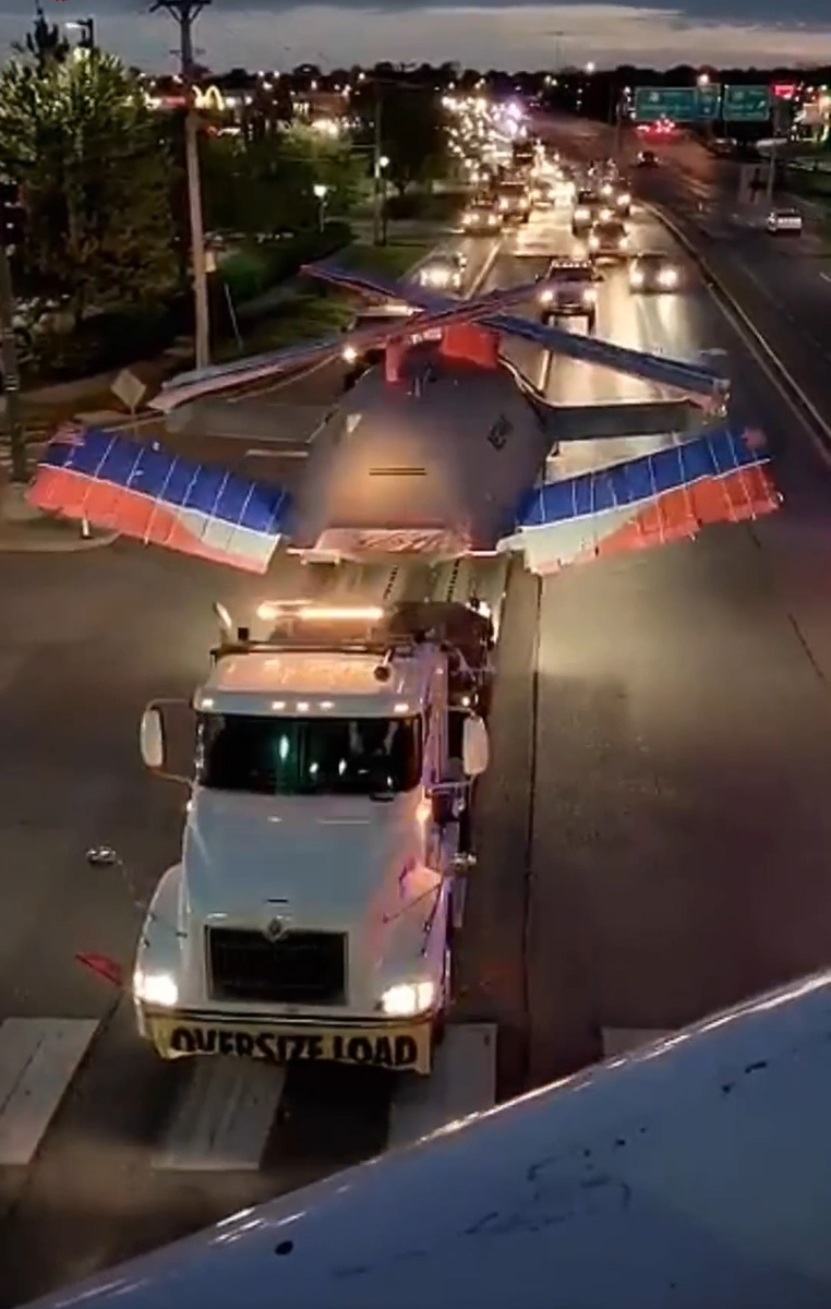 The haul took place after hours, which made it easier without traffic, but also harder because the massive convoy that included company escorts, troopers, Boeing’s team and a DOT representative traveled in the dark. St. Louis KMOV4 local news was there to cover the story. Watch the coverage.