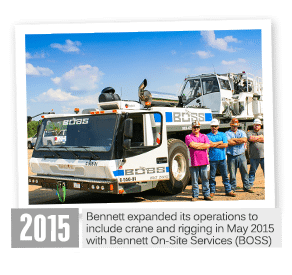 Bennett expanded it’s operations to include crane and rigging in May 2015 with Bennett On-Site Services.