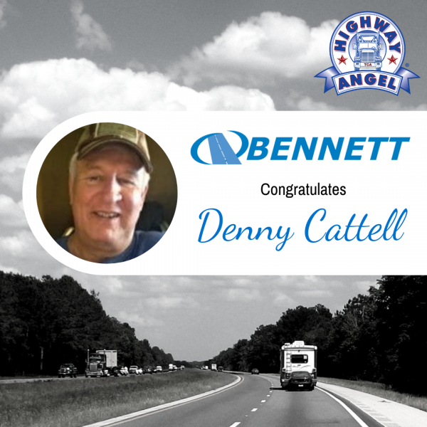 The Truckload Carriers Association recognized Bennett DriveAway’s Denny Cattell as a Highway Angel for his willingness to stop and assist an elderly driver and family on August 1, 2018. Road debris had torn into their RV, stranding them on I-80 in Illinois. Denny helped the family avoid a potentially dangerous situation.